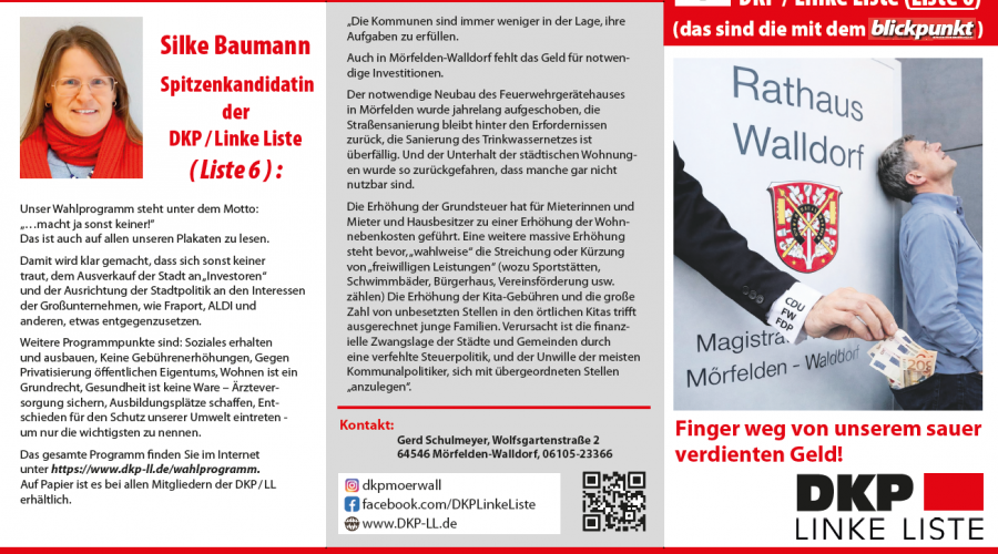 Die Wahlversammlung der DKP/Linke Liste Mörfelden-Walldorf hat am 18. November 2025 einstimmig beschlossen, dass die Wählergemeinschaft DKP/Linke Liste ihre Arbeit …